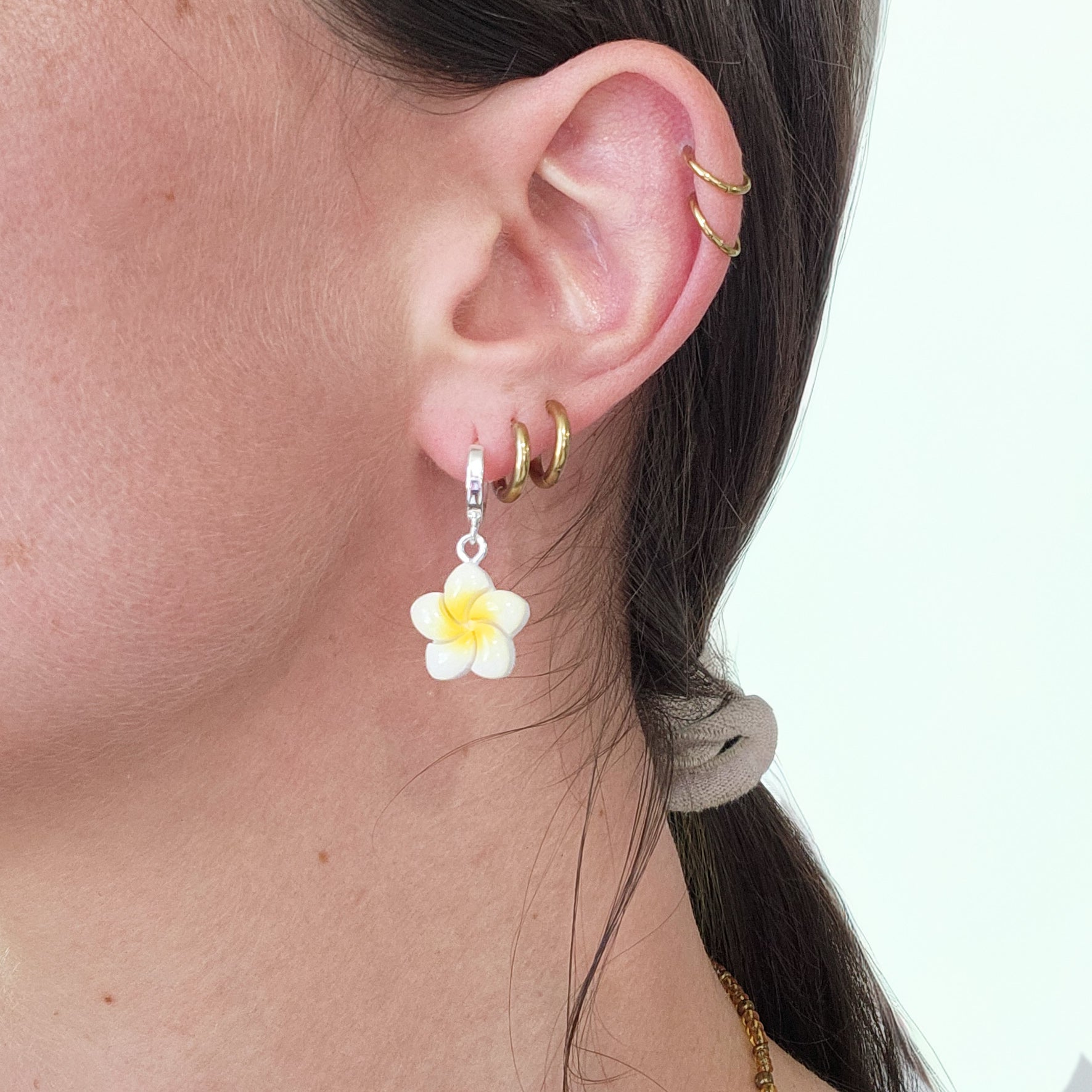 The Frangipani Dangle Earrings are handcrafted polymer clay earrings made with care and intention from start to finish. Each pair is beautifully unique from one to the next. Very lightweight and easy to wear for even the most sensitive ears.