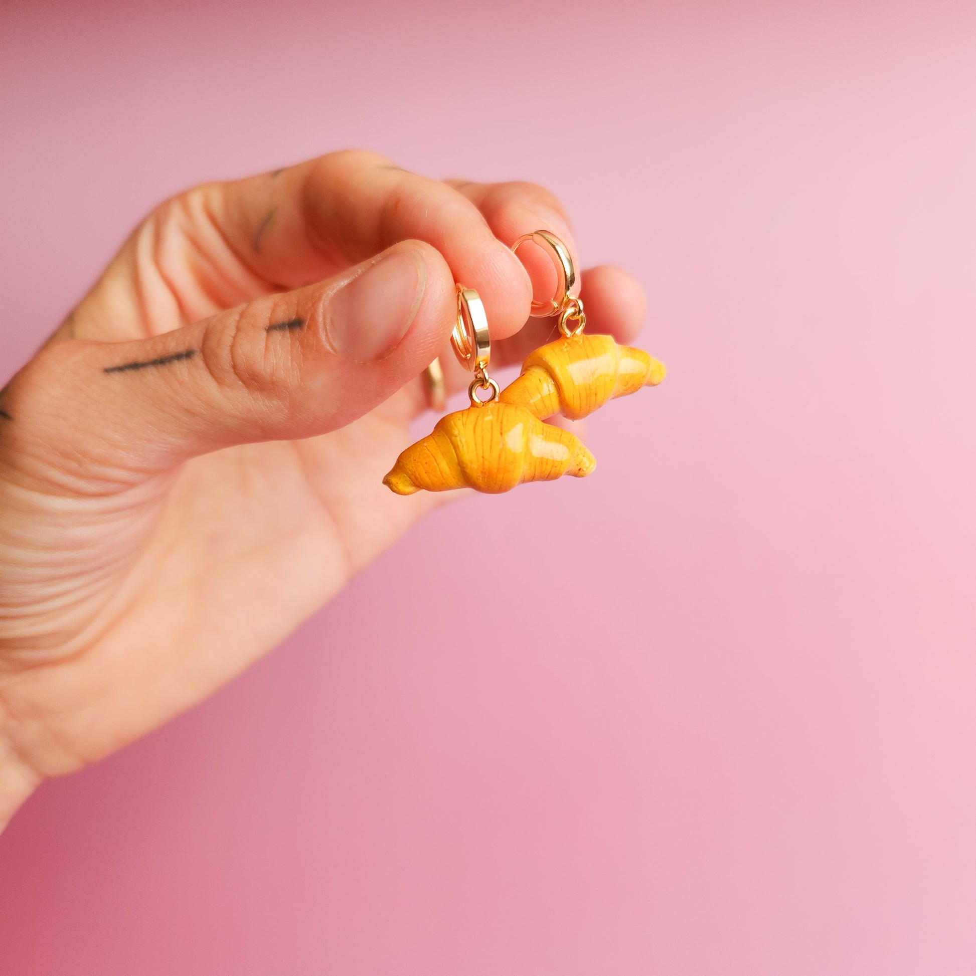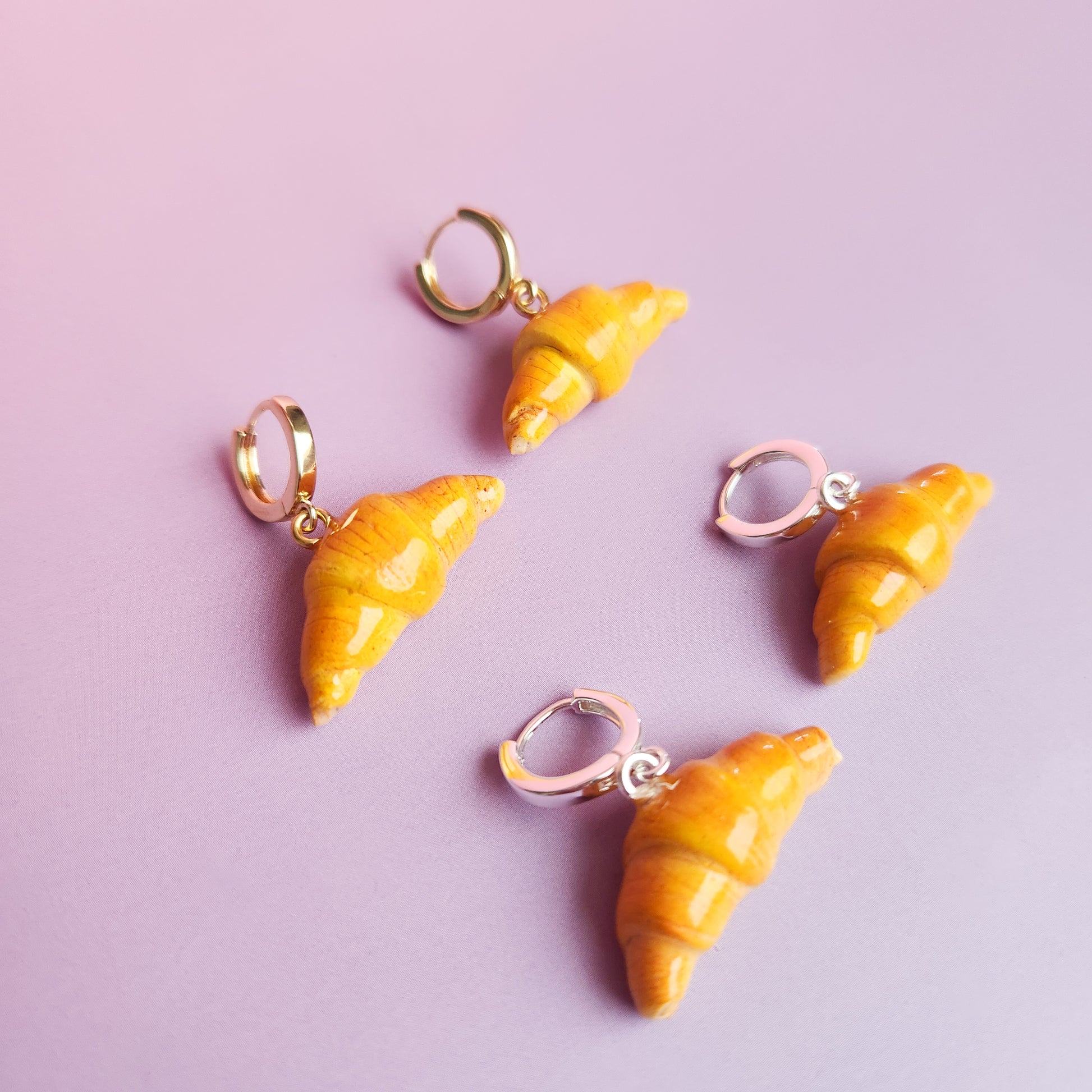 The Croissant Dangle Earrings are handcrafted polymer clay earrings made with care and intention from start to finish. Each pair is beautifully unique from one to the next. Very lightweight and easy to wear for even the most sensitive ears.